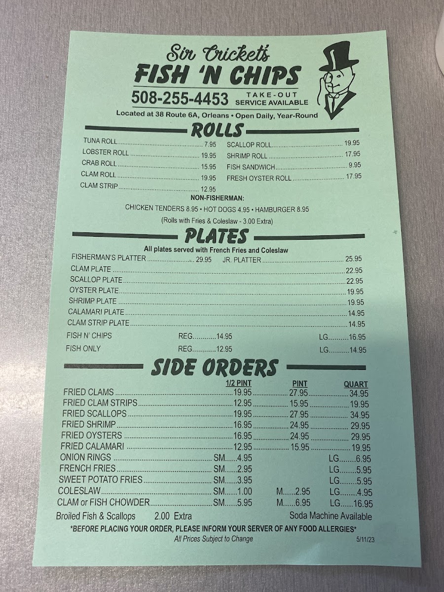Whether you choose to dine in or take out, Sir Cricket's Fish & Chips guarantees deliciousness and a taste of Cape Cod that will entice seafood lovers of all kinds!